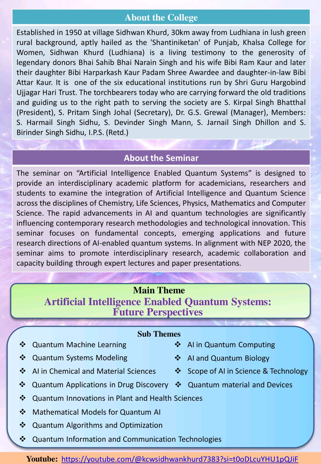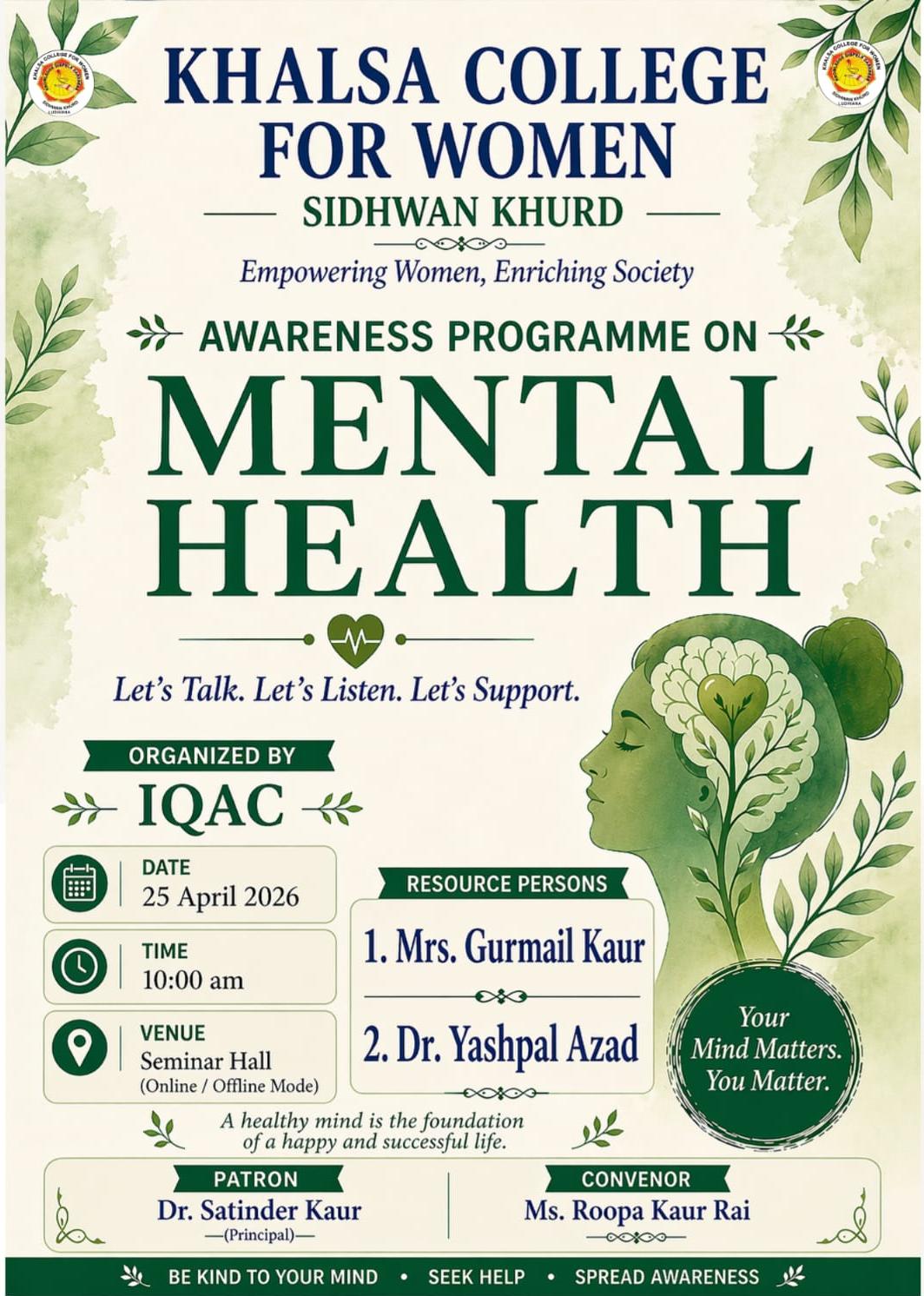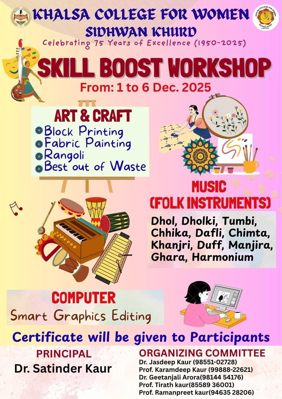 It is my pleasure to welcome you to Khalsa College for Women, Sidhwan Khurd. As the Principal of this illustrious institution, I am honored to lead a vibrant academic community dedicated to excellence in education. Khalsa College for Women was established to impart value based higher education for promoting education among rural women. Women empowerment and women education is the vision of Padam