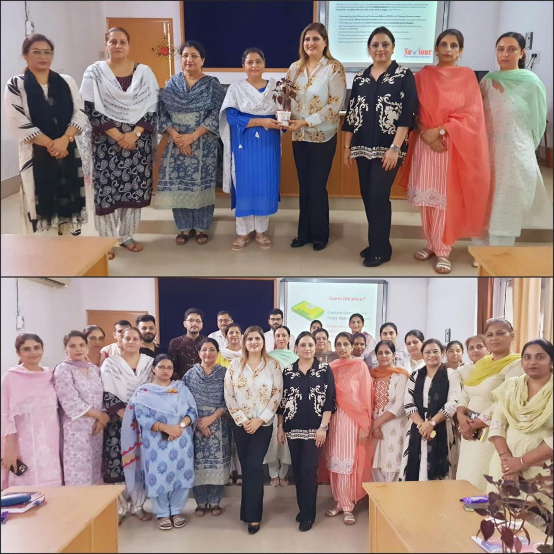 Under the patronage of Shri Guru Hargobind Ujagar Hari Trust and the able guidance of Principal Dr. Satinder Kaur, Khalsa College for Women, Sidhwan Khurd organized a Faculty Awareness Seminar on “Ethical Overseas Education Guidance” on August 23, 2025. The distinguished resource persons were Ms. Rashmi Kapil, Director of Operations at Saviour Education Abroad and Mrs. Puneet Chopra, an experienced English language and IELTS trainer. The program commenced with a warm welcome to the guests by Principal Dr. Satinder Kaur who presented saplings as a token of respect and gratitude. In her insightful address, Ms. Rashmi Kapil highlighted emerging trends in global education, the importance of skill enhancement and the role of teachers in motivating students towards international exposure. Mrs. Puneet Chopra engaged the faculty with fun interactive activities such as brain teasers and the winners were felicitated with small gifts that added joy and enthusiasm to the occasion. The lecture was meticulously organized by Dr. Jasdeep Kaur while the stage proceedings were conducted gracefully by Dr. Manpreet Kaur. The event concluded with refreshments for the faculty members, fostering fellowship and cheerful interaction. The session proved inspiring, equipping the faculty with new perspectives on ethical education practices and their role in guiding students toward global achievements.
